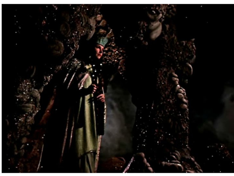 роднит эту героиню со сказочной царевной. Не только необыкновенная красота, но и чудесные помощники, выполняющие все ее распоряжения, — разноцветные ящерки. Живет она в прекрасном подземном дворце, куда можно попасть, только преодолев многие испытания, похожие на те, которые проходит и герой волшебной сказки.