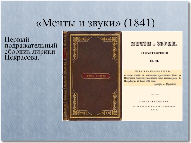 Перед публикацией Некрасов принес рукопись Жуковскому, тот посоветовал стихов не печатать, однако отменять выход сборника было уже поздно, и книга с подписью Н. Н. все-таки увидела свет.