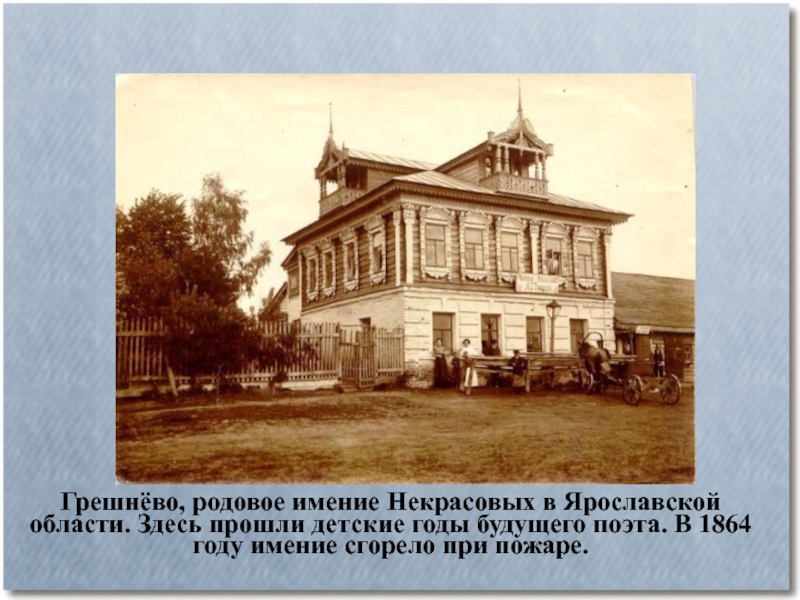 Слайд 4Грешнёво, родовое имение Некрасовых в Ярославской области. Здесь прошли детские годы