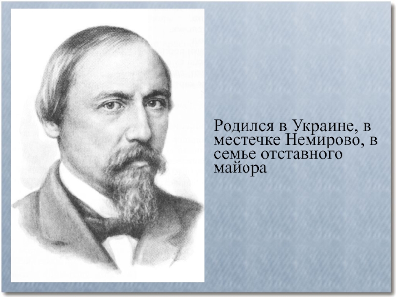 Слайд 3Родился в Украине, в местечке Немирово, в семье отставного майора