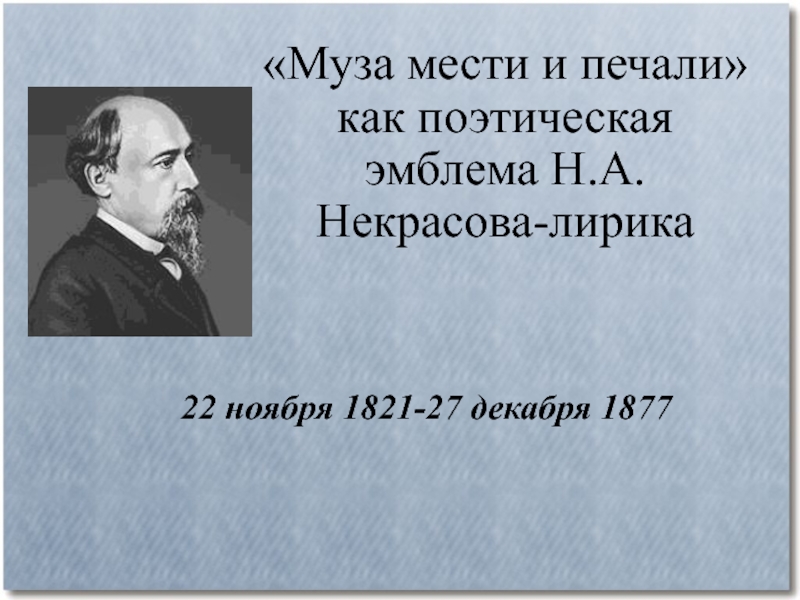 Слайд 1«Муза мести и печали» как поэтическая эмблема Н.А.Некрасова-лирика