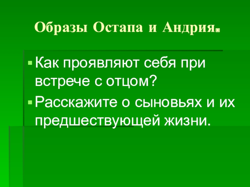 Образы Остапа и Андрия.Как проявляют себя при встрече с отцом?Расскажите о сыновьях и их предшествующей жизни.
