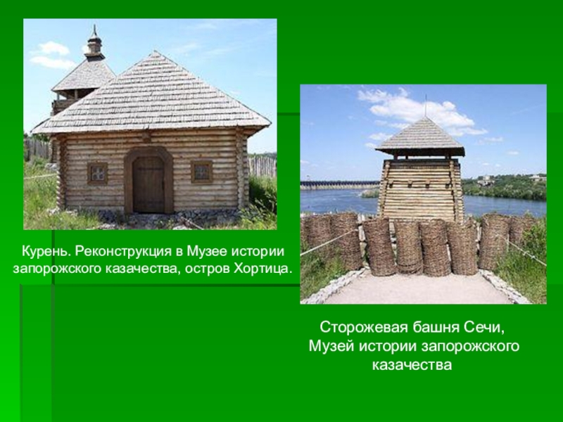 Курень. Реконструкция в Музее истории запорожского казачества, остров Хортица.Сторожевая башня Сечи, Музей истории запорожского казачества