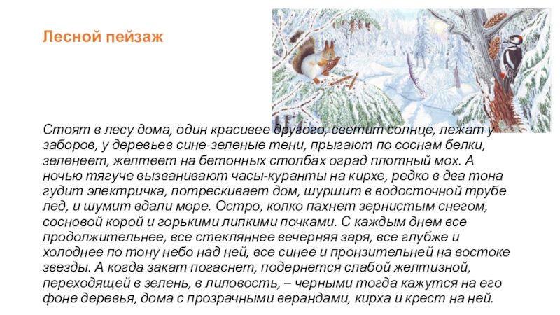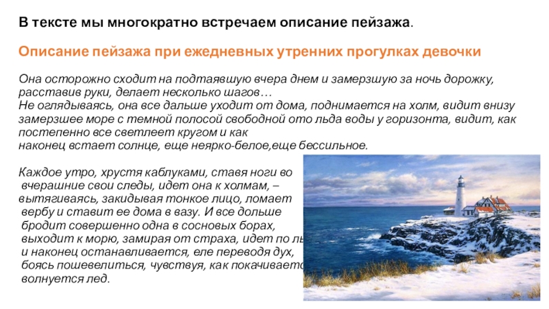 Слайд 2В тексте мы многократно встречаем описание пейзажа.