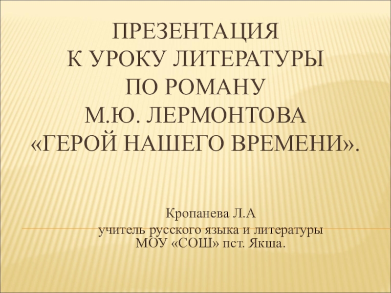 / В.Г. Белинский. По роману М.Ю. Лермонтова «Герой нашего времени»/