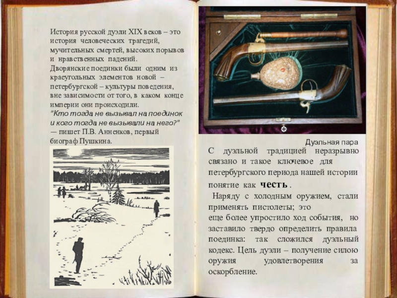 С дуэльной традицией неразрывно связано и такое ключевое для