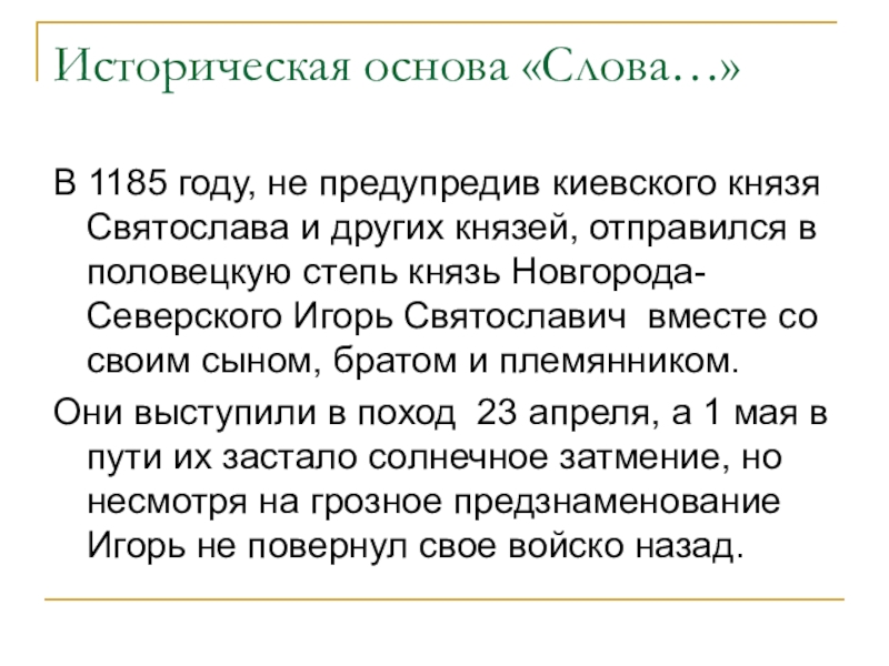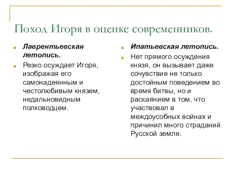 Нет прямого осуждения князя, он вызывает даже сочувствие не только достойным поведением во время битвы, но и раскаянием в том, что участвовал в междоусобных войнах и причинил много страданий Русской земле.