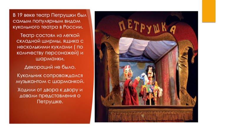 Слайд 3В 19 веке театр Петрушки был самым популярным видом кукольного театра