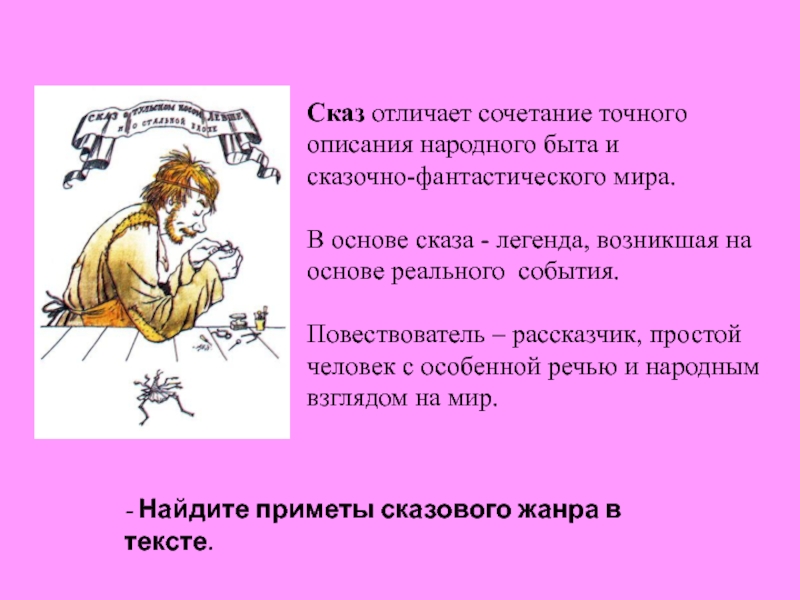 - Найдите приметы сказового жанра в тексте.