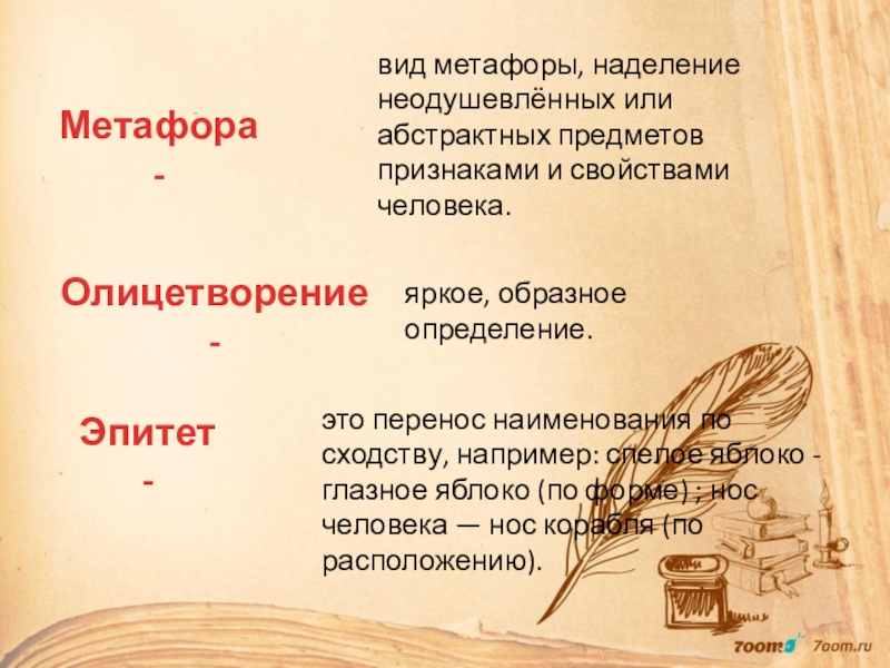 вид метафоры, наделение неодушевлённых или абстрактных предметов признаками и свойствами человека.