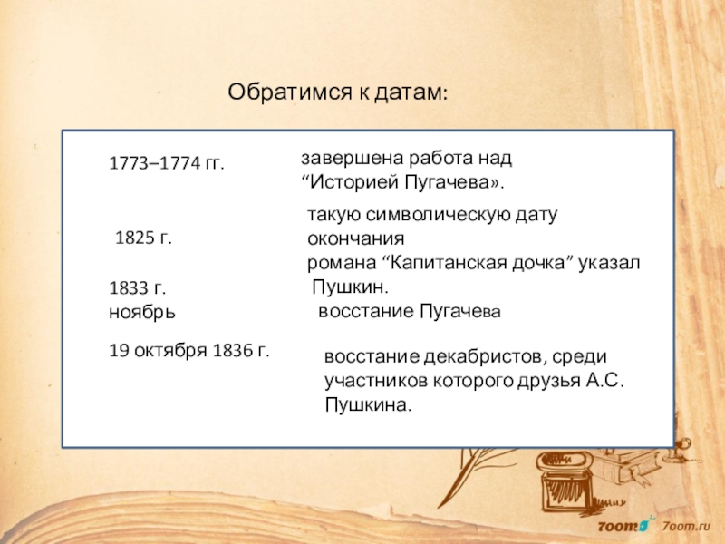 такую символическую дату окончания романа “Капитанская дочка” указал
