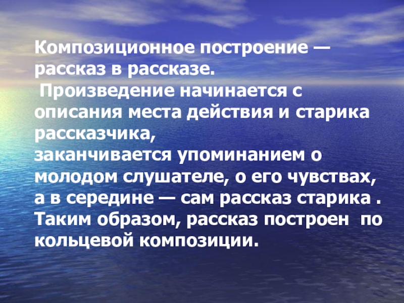 Горький рисует ясную, прозрачную ночь в степном Крыму, упоминает плеск близкого моря.