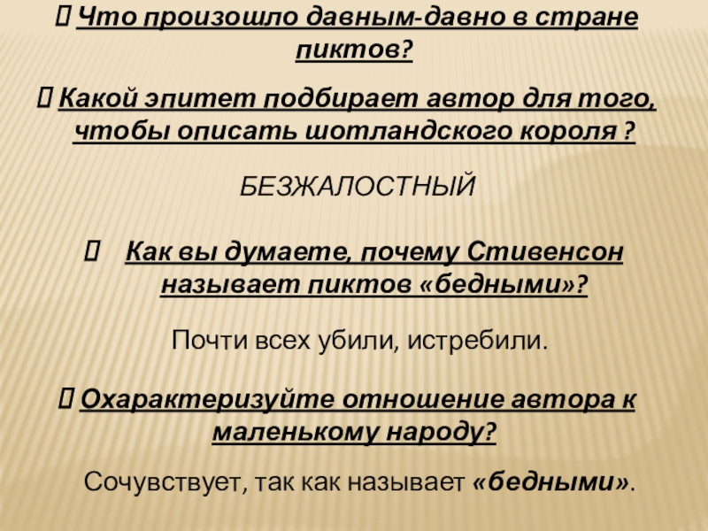 Как вы думаете, почему Стивенсон называет пиктов «бедными»?