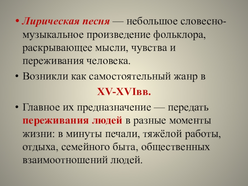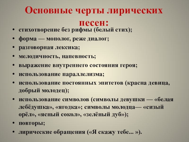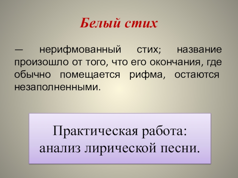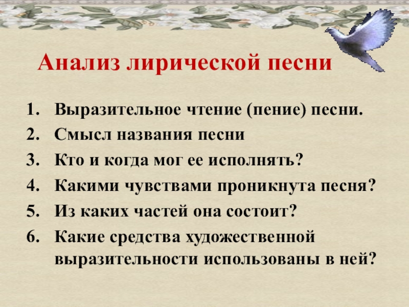 Практическая работа: анализ лирической песни.