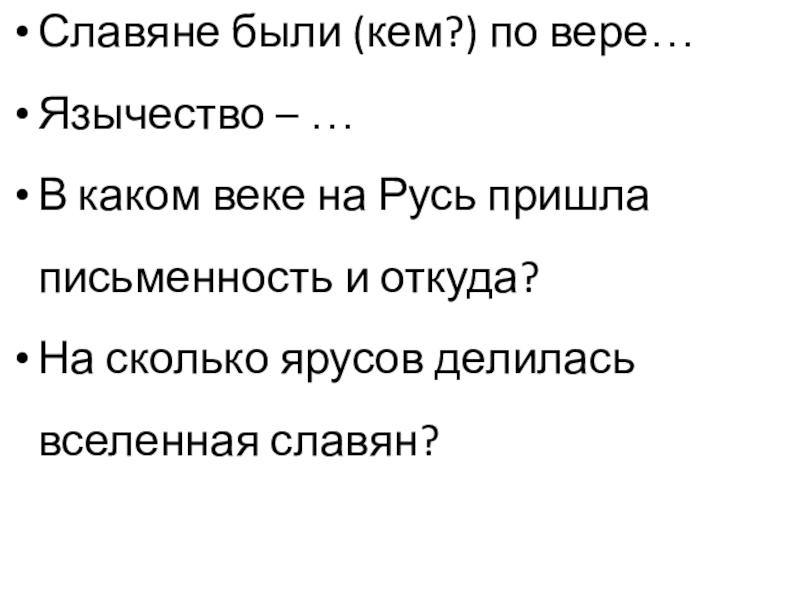 Слайд 10Славяне были (кем?) по вере…