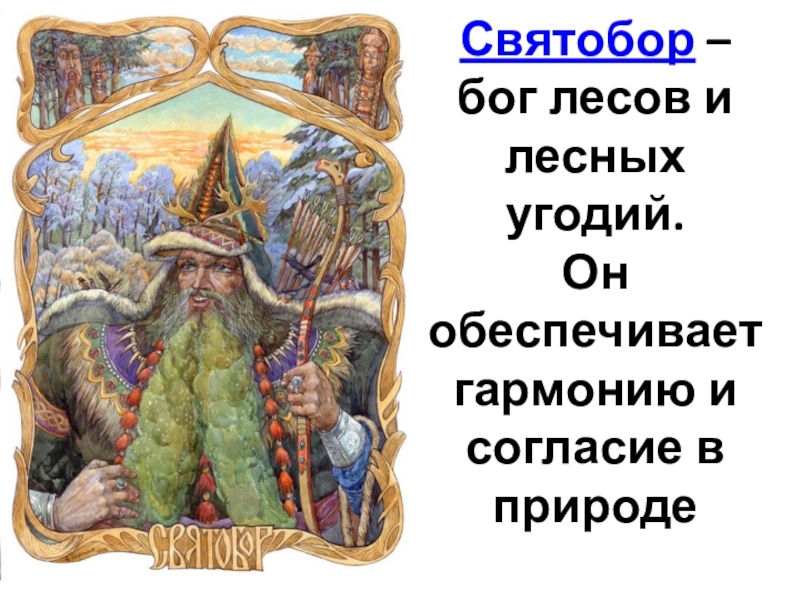 Слайд 28Святобор – бог лесов и лесных угодий. Он обеспечивает гармонию и