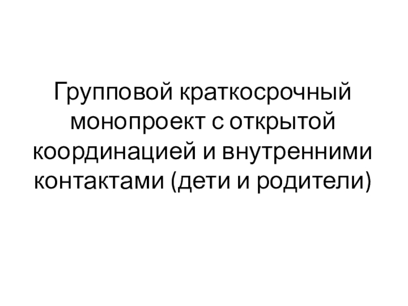 Слайд 4Групповой краткосрочный монопроект с открытой координацией и внутренними контактами (дети и