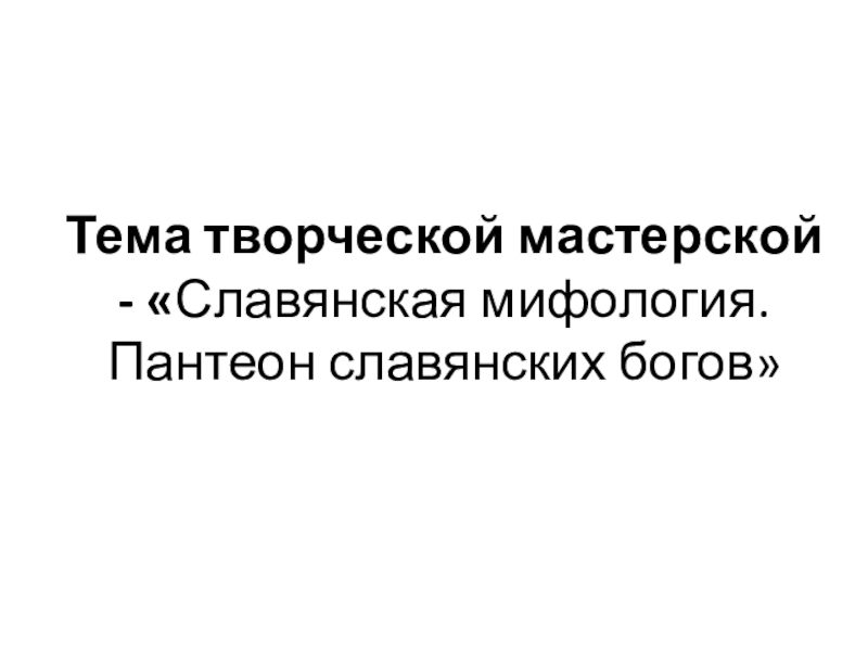 Тема творческой мастерской - «Славянская мифология.  Пантеон славянских богов»
