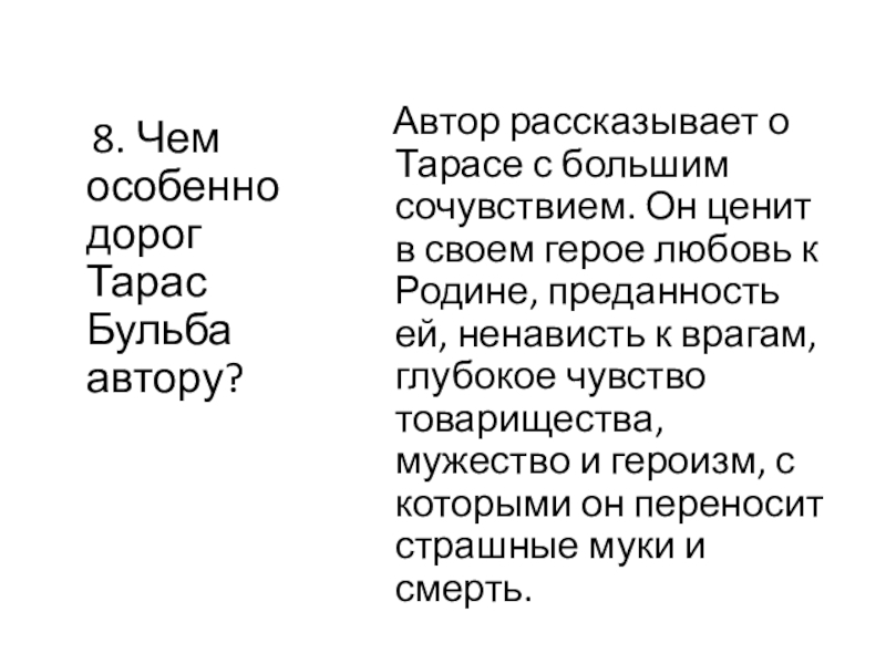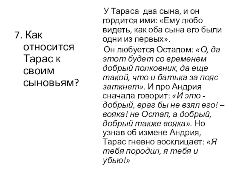 «Тарас был один из числа коренных, старых полковников: весь был он создан для бранной тревоги и отличался грубой прямотой своего нрава»