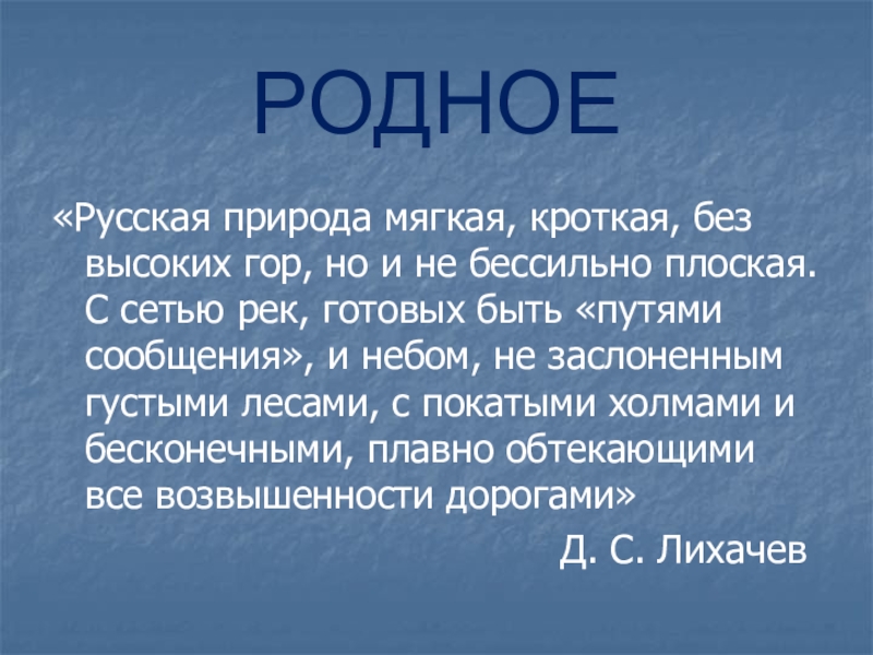 «Русская природа мягкая, кроткая, без высоких гор, но и не бессильно