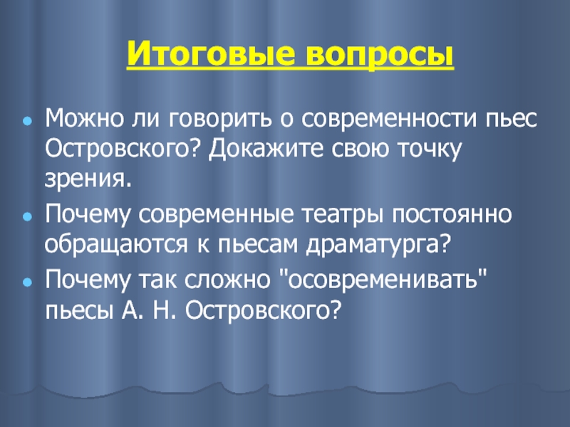 Можно ли говорить о современности пьес Островского? Докажите свою