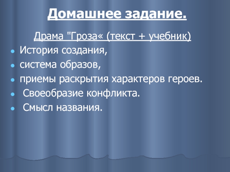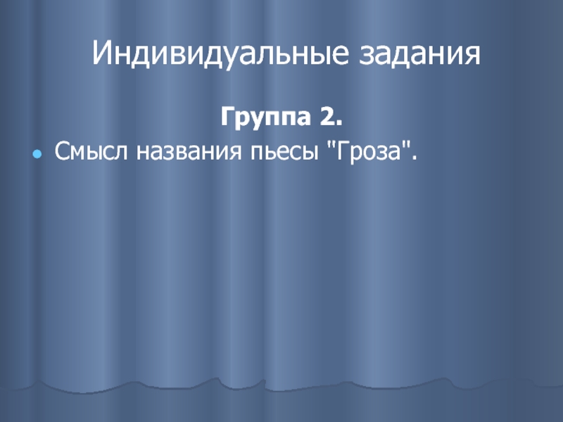 Слайд 19 «Гроза» (1860) — пьеса о пробуждающейся, протестующей личности, которая больше не хочет