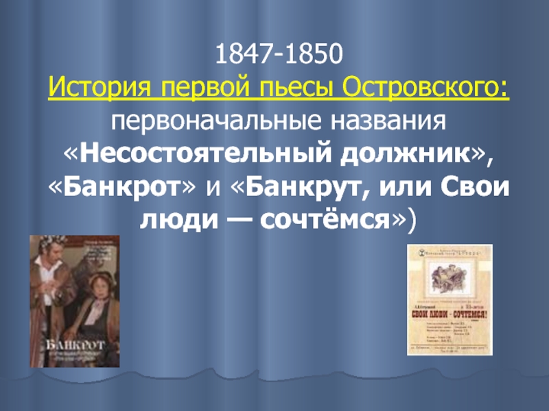 первоначальные названия «Несостоятельный должник», «Банкрот» и «Банкрут, или