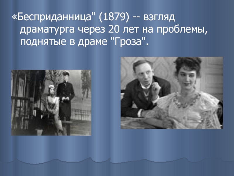 Слайд 22«Бесприданница" (1879) -- взгляд драматурга через 20 лет на проблемы, поднятые в
