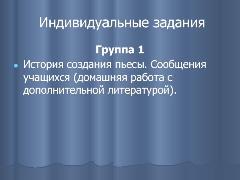 История создания пьесы. Сообщения учащихся (домашняя работа с