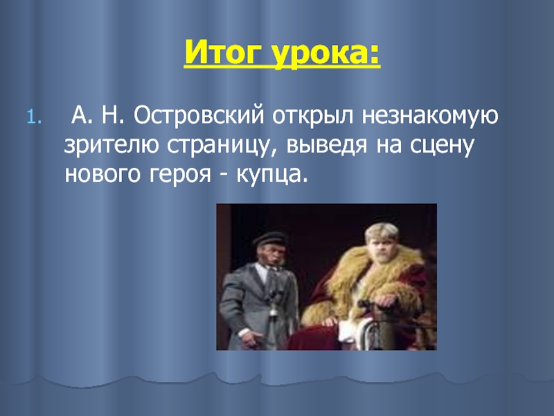 А. Н. Островский открыл незнакомую зрителю страницу, выведя на сцену нового