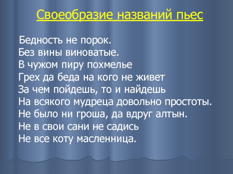 Слайд 18Одна за другой появляются пьесы "Бедность не порок", "Не в свои