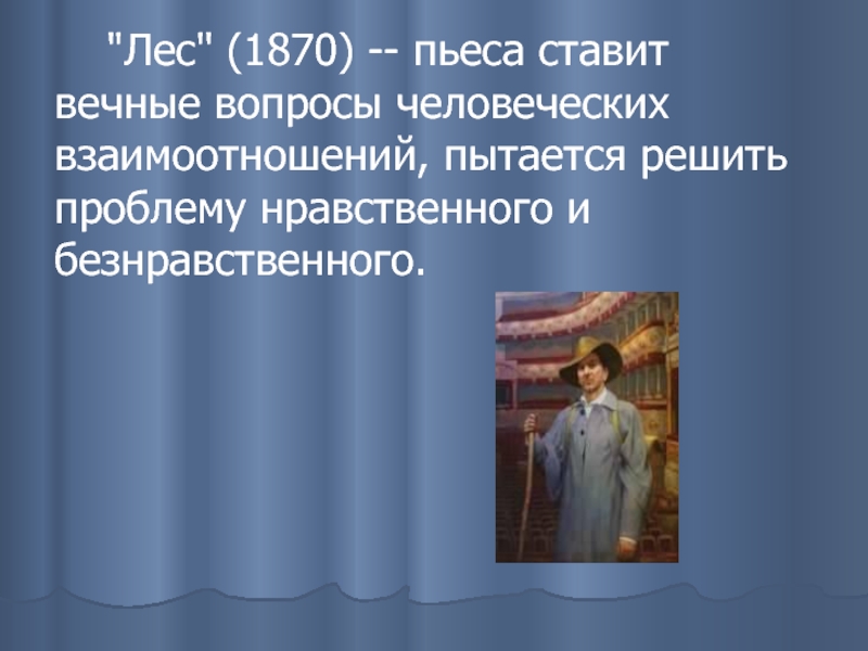 Слайд 20 "Лес" (1870) -- пьеса ставит вечные вопросы человеческих