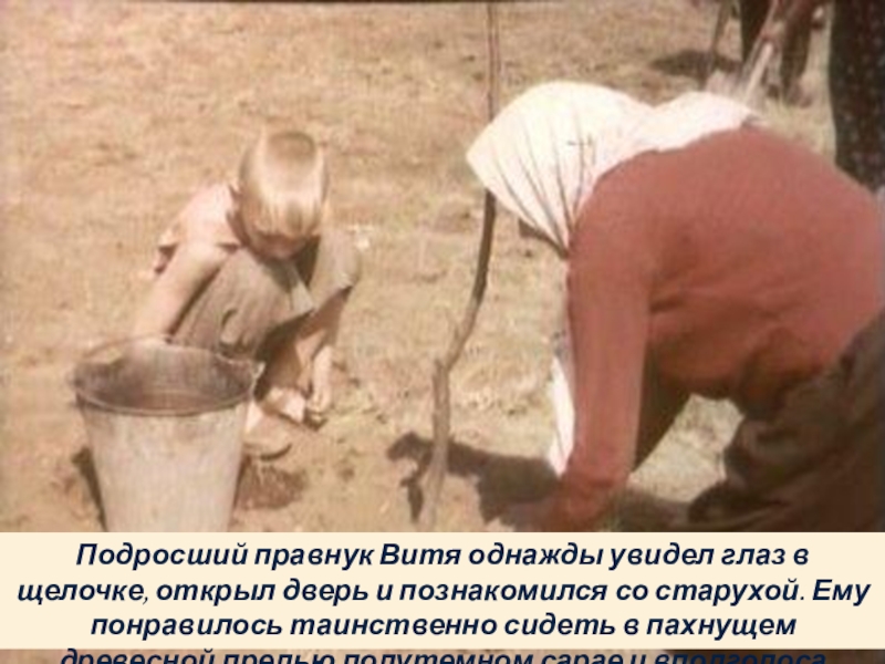 познакомился со старухой. Ему понравилось таинственно сидеть в пахнущем древесной прелью полутемном сарае и вполголоса беседовать с прабабкой.