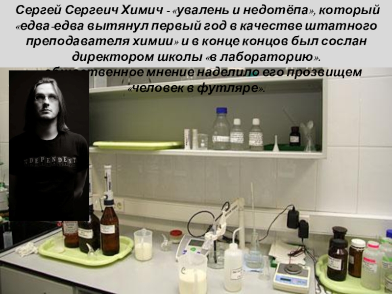 первый год в качестве штатного преподавателя химии» и в конце концов был сослан директором школы «в лабораторию».