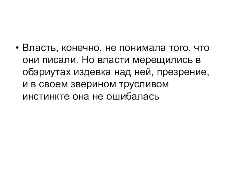 в обэриутах издевка над ней, презрение, и в своем зверином трусливом инстинкте она не ошибалась