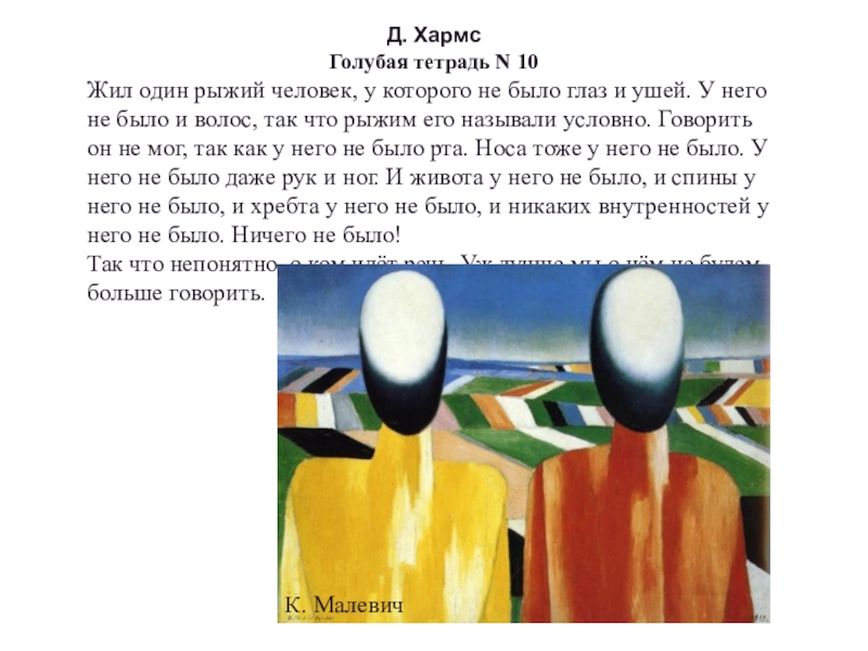Даниил Хармс — поэт и драматург, внимание которого сосредоточено не на