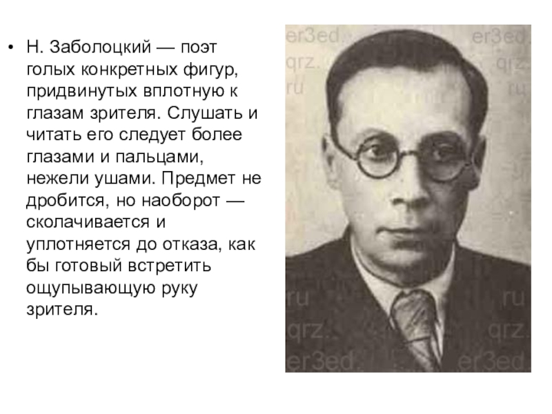 Н. Заболоцкий — поэт голых конкретных фигур, придвинутых вплотную к глазам