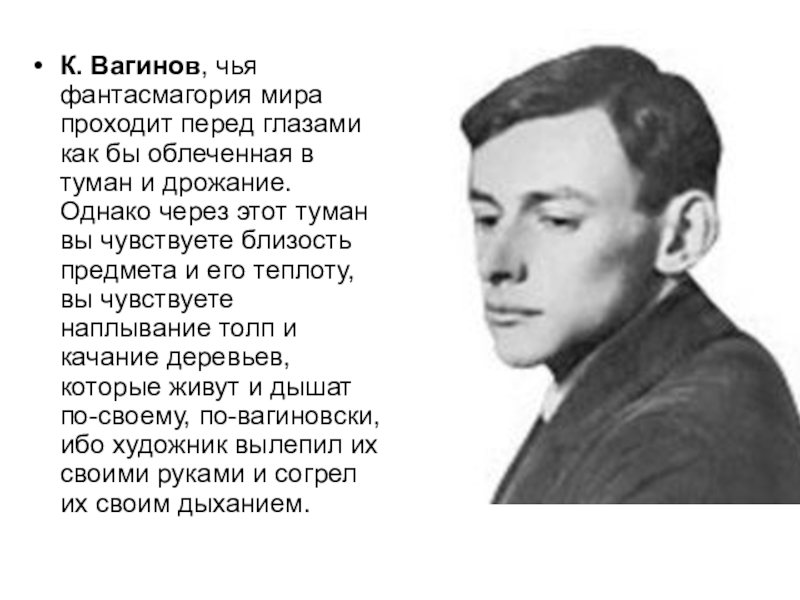 К. Вагинов, чья фантасмагория мира проходит перед глазами как бы облеченная
