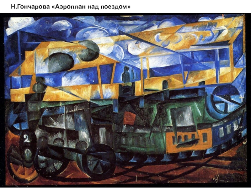 Слайд 13Н.Гончарова «Аэроплан над поездом»