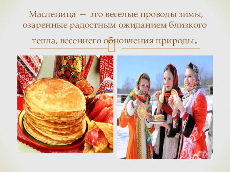 Масленица — древний славянский праздник с многочисленными обычаями, через века дошедший до наших дней. Отмечается в течение недели перед Великим постом.