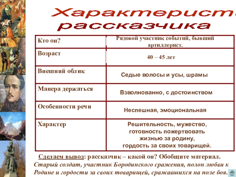 Сделаем вывод: рассказчик – какой он? Обобщите материал.