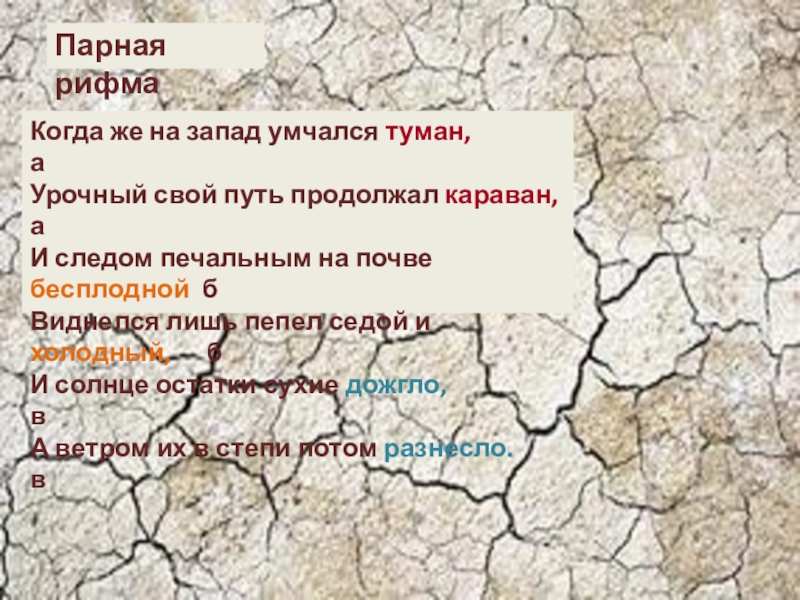Слайд 24Ри́фма (др.-греч. ῥυθμός «размеренность, ритм») — созвучие в окончани двух или