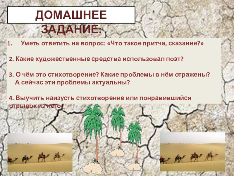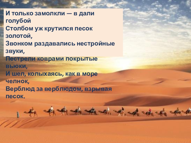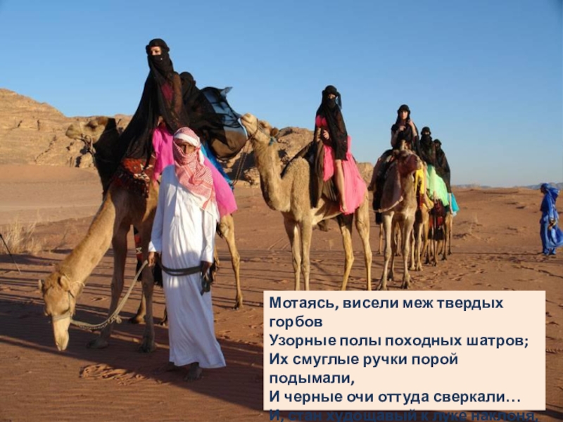 Слайд 10Вот к пальмам подходит, шумя, караван: