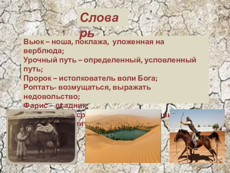 Вьюк – ноша, поклажа, уложенная на верблюда;