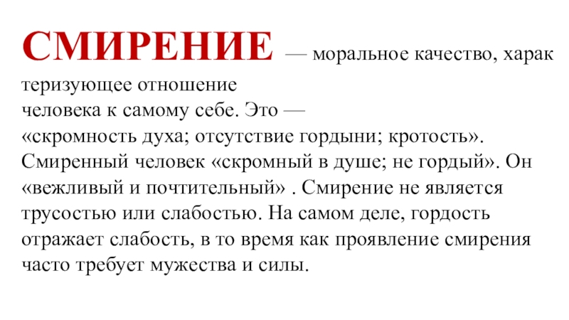 Слайд 8СМИРЕНИЕ — моральное качество, характеризующее отношение
