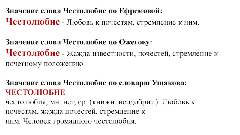 Слайд 9Значение слова Честолюбие по Ефремовой:
