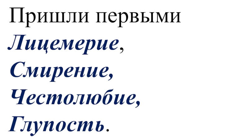 Слайд 6Пришли первыми Лицемерие, Смирение, Честолюбие, Глупость.