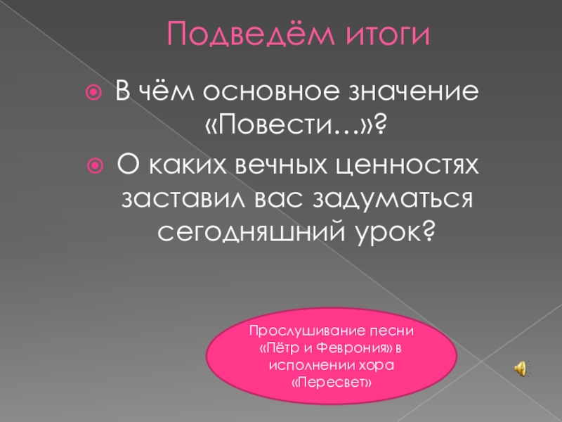 Прослушивание песни «Пётр и Феврония» в исполнении хора «Пересвет»