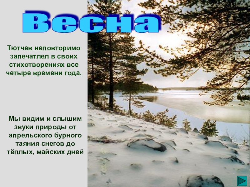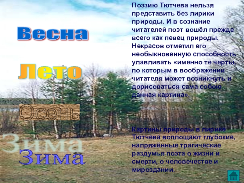 Тютчев неповторимо запечатлел в своих стихотворениях все четыре времени года.