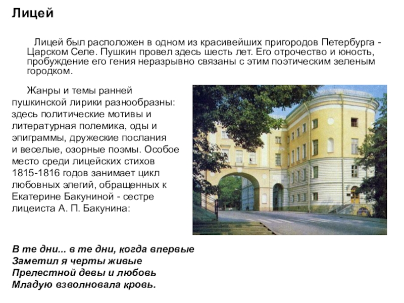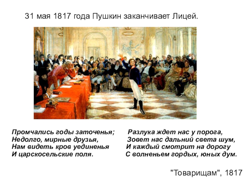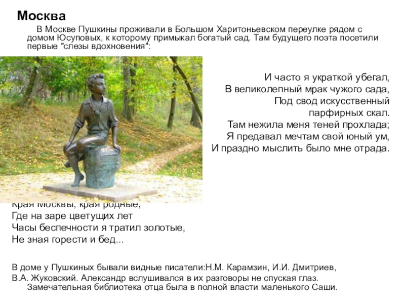 Написаны стихотворения («Вновь я посетил…», «Я памятник себе воздвиг нерукотворный…»), драма «Борис Годунов», критические статьи для созданного им литературного журнала «Современник» (привлечены авторы Н.В.Гоголь, Н.Кольцов, Ф.Тютчев и другие)